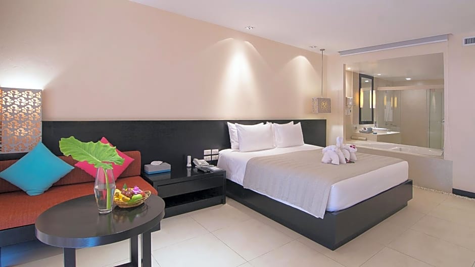 DELUXE is 506 square feet and includes either a queen-size bed 150-154 width or 2 single beds 80-130 width.